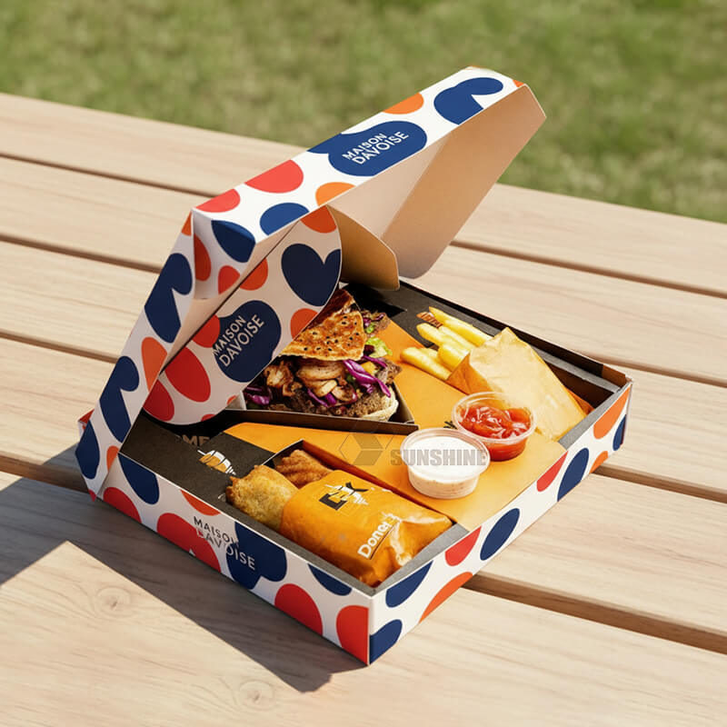 Our wholesale paper shawarma box is designed for restaurants, food trucks, and takeaway shops that need reliable and eco-friendly packaging for shawarma, doner kebab, wraps, and street food. Made from sturdy kraft paper, this custom printed food box combines durability with sustainability, making it ideal for modern foodservice businesses that care about both presentation and the environment.