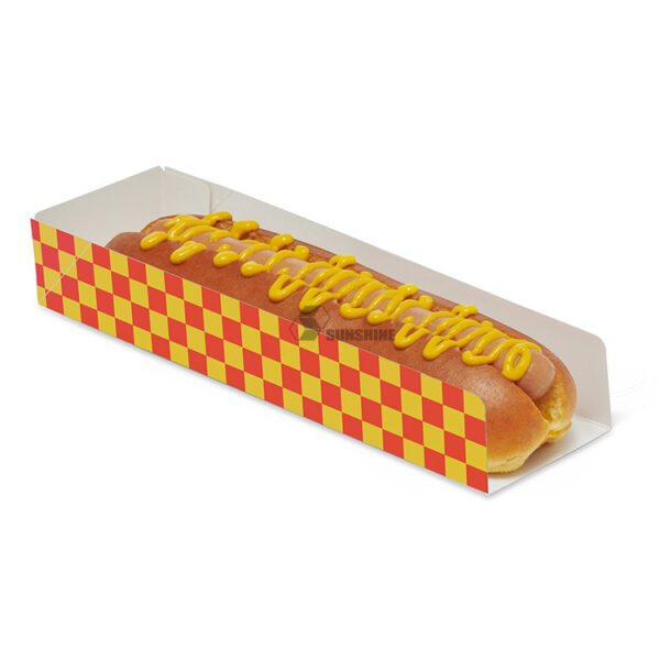 Durable, eco-friendly custom hot dog box for takeaway and fast food. Disposable, grease-resistant, and printable with your logo for hot dogs, sandwiches, and grab-and-go meals.